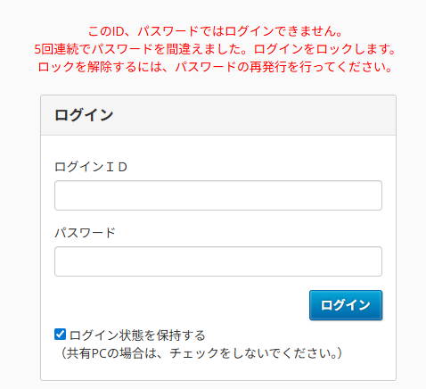 ロック機能を有効にすると5回連続でパスワード入力を間違えた場合、メール認証するまでログインをロックします。