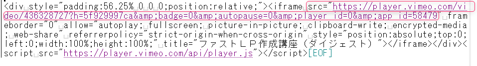 vimeoの管理画面にログインし動画の詳細で共有ボタンを押す。